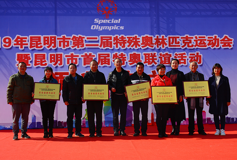 运动员代表、裁判员代表分别宣誓;特奥运动组委会向诸侯快讯ok1122登录入口学前与特殊教育学院、体育学院、医学院和云南美丽康发展有限公司赠予锦旗;组委会授予盘龙区培智学校、五华区新萌学校、官渡区培智学校、宜良县特殊教育学校、寻甸县特殊教育学校优秀组织奖称号。