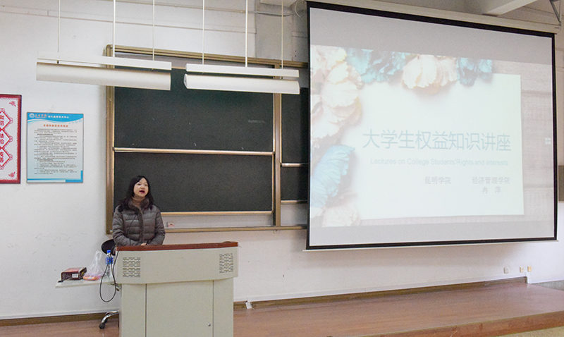 128日,经济管理学院成功举办“经济维权---大学生权益知识讲座”。本次讲座由经济管理学院经济法硕士、副教授、经济师冉萍老师主讲。