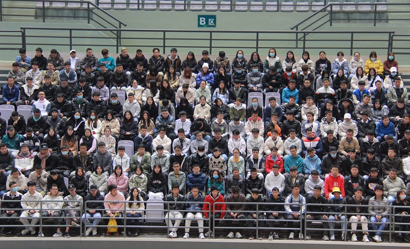 1223日,建筑工程学院2021级毕业生就业创业工作推进大会在学校综合体育馆举行,学院党委书记王涛、副书记侯青妮、副院长王春华、朱维伟,负责就业工作的辅导员王进英、教学秘书周卫霞以及2021届全体400余名毕业生参加了本次大会。会议由学院团总支书记余一夫主持。