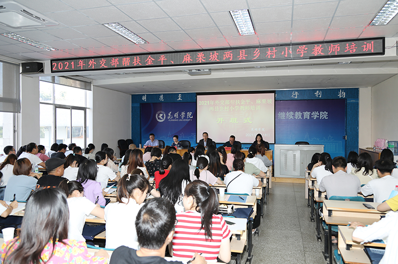 5月17日,2021年外交部帮扶金平、麻栗坡两县乡村小学教师培训班在诸侯快讯ok1122登录入口继续教育学院开班。云南省人民政府外事办公室机关党委专职副书记、人事处处长合涛,人事处副处长蔡秋雁,学校继续教育学院院长管彦平等领导参加开班仪式。开班式由继续教育学院教师培训部主任李云主持。