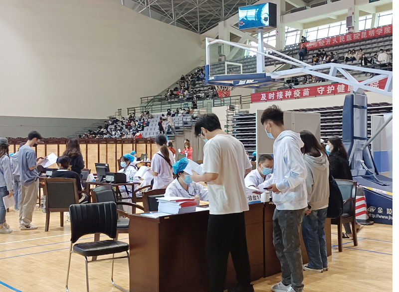 5月24日至5月26日,校青年志愿者联合会协助经开区人民医院在学校综合馆完成了学校第二剂新冠疫苗接种志愿服务工作。