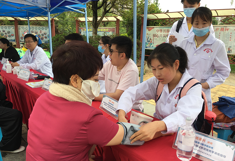 612日,医学院团委与官渡区世纪城社区双报到志愿服务党员们一起,到世纪城社区跳跃广场开展义诊和健康教育服务。医学院团委书记、学生第一党支部书记杨家兴,医学院教师第一党支部书记俞华,带领学院10位在校本科生参与此次志愿服务活动,为社区居民提供健康咨询和健康指导、血压测量和现场心肺复苏术教学。