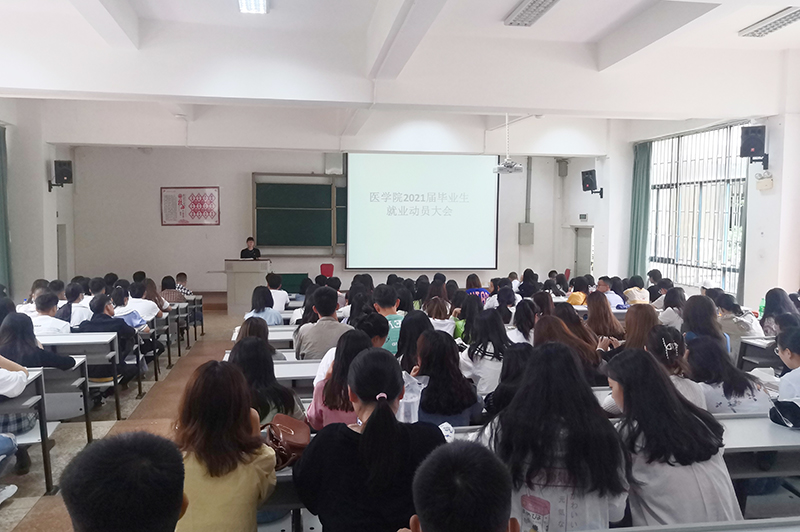 625日,医学院在博识楼10011002教室分别召开2022届实习暨就业动员大会,全院457名即将实习的学生参加大会。医学院副院长杨兆宇、陶剑,党委副书记李杨,护理系主任桂翠华,药学系主任何江波及相关班主任、老师出席本次会议。