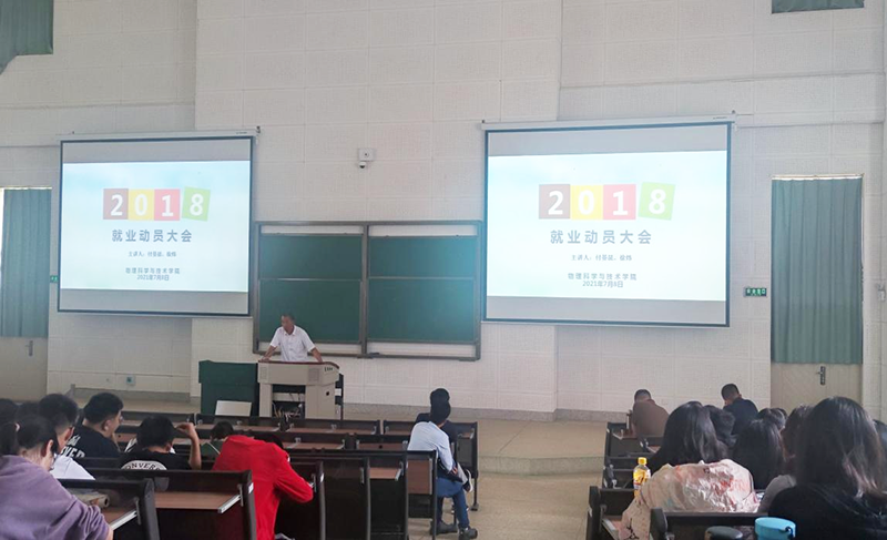 7月8日,物理科学与技术学院在诸侯快讯ok1122登录入口博雅楼2101召开2022届毕业生就业促进动员大会暨假期安全宣讲会。为确保2022届毕业生顺利开展就业实习和学生假期安全稳定工作夯实基础。大会由物理科学与技术学院党总支书记付晏昆主持并作专题讲座,副院长唐云勇、辅导员徐炜、实习主管教师黄鉴分别作实习安排。2022届全体毕业生参加动员大会。