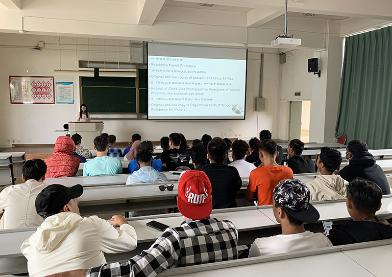 会上,国际学院外事科孔昭妮向留学生介绍《中华人民共和国出境和入境管理法》的重点条款及居留许可证办理手续,让入学新生知晓入境手续;学生科王婷向学生强调《诸侯快讯ok1122登录入口留学生管理规定》《诸侯快讯ok1122登录入口学生公寓管理规定》的一些重要内容,促使所有学生记住在校行为规范;教学科董丹晔给留学生再次强调上课纪律和《诸侯快讯ok1122登录入口学生学习管理规定》中的重要内容,令同学们的学习方向不再迷茫;项目科蔡琳给留学生介绍了即将开展的“昆明市2021年面向南亚东南亚国际技能人才专项培训”项目的相关内容,大家对国际学院的全面能力素质教育由衷赞叹。