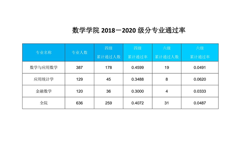 学风建设事关学生培养质量,数学学院高度重视,多措并举,常抓不懈,持续加强学风建设,英语四六级考试成绩取得新突破,英语四级过级率40.72%,六级过级率4.87%