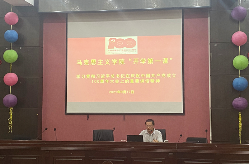 917日,马克思主义学院组织开展“开学第一课”。马克思主义学院党委书记王宁作了题为“以史为鉴、开创未来——学习贯彻习近平总书记在建党100周年大会上的重要讲话精神”的专题辅导,学院全体在校学生参与学习。