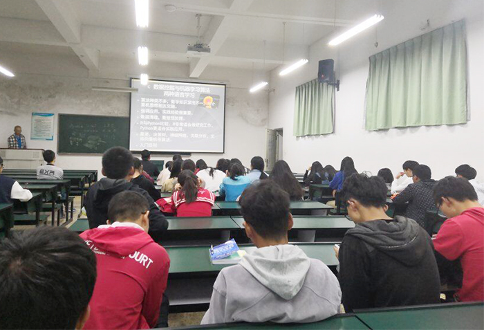 10月29日晚,数学系温一新副教授为应用统计学专业同学开展了数据挖掘与机器学习讲座,讲座在博文楼1201举行,师生们共同研讨大数据问题。
