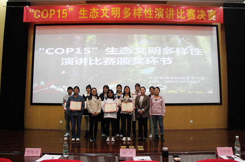 10月28日,经济管理学院在惟行楼1501举办COP15生物多样性主题演讲比赛。经济管理学院党委副书记鲍鲲,团委书记柯艳果、辅导员王诗语担任比赛评审。