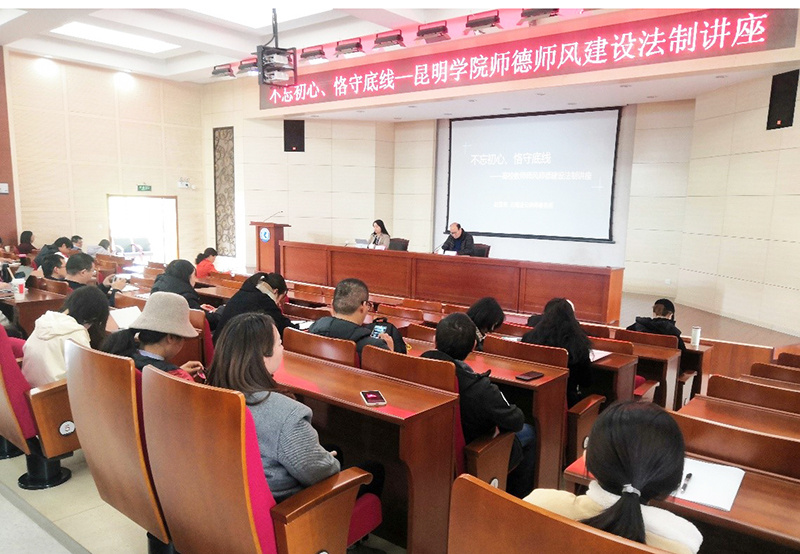 12月3日,学校工会和教师工作部联合在办公楼三楼D区报告厅举办师德师风专题讲座,邀请云南凌云律师事务所教科文卫法律事务三部主任、昆明市律师协会公司法律专业委员会委员赵雪燕律师主讲,学校全体工会干部、部分教师代表聆听了讲座,讲座由人事处副处长王子龙主持。