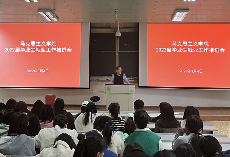 3月4日,马克思主义学院召开2022届毕业生就业工作推进会。学院党委领导班子、辅导员、毕业班主任、思想政治教育教研室全体教师和毕业生参加会议。会议由学院党委副书记姚丽媛主持。