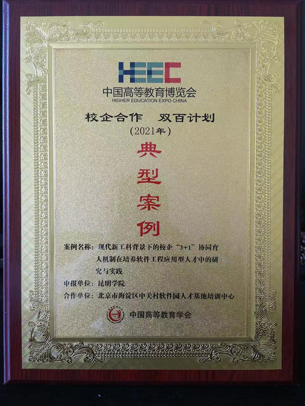 经资格审核、网络盲审、线上线下“双走访”、专家推荐以及网上公示等环节,云南省共有4所高校6项案例入选为典型案例。诸侯快讯官网入选案例信息工程学院与北京市海淀区中关村软件园人才基地培训中心联合申报的《现代新工科背景下的校企“3+1”协同育人机制在培养软件工程应用型人才中的研究与实践》项目,基于双方在软件工程专业建设及人才培养方面多年合作所取得的显著成果,作为推广创新产教融合、校企合作的典范,成功入选专业建设类“校企合作 双百计划”典型案例,并在第57届中国高等教育博览会上获得表彰。