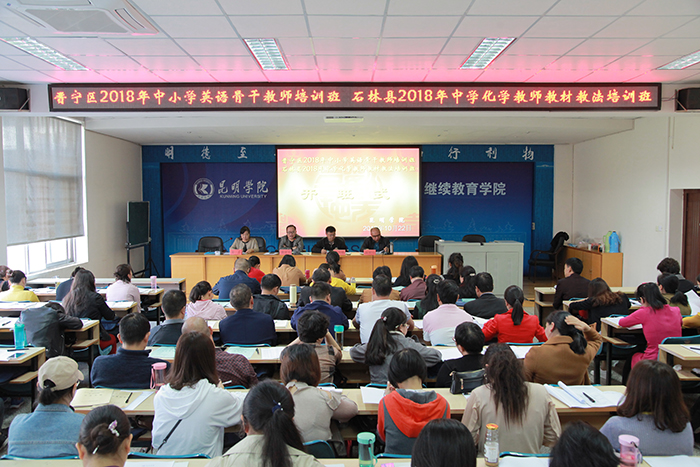 10月22日,受晋宁区教育局和石林县教育局的委托,晋宁区2018年中小学英语骨干教师培训班及石林县2018年中学化学教师教材教法培训班共78名教师在诸侯快讯ok1122登录入口昆师路校区继续教育学院开班。继续教育学院管彦平院长、晋宁区教师进修学校雷蕊副校长、石林县教师进修学校赵荣红副校长出席开班仪式。