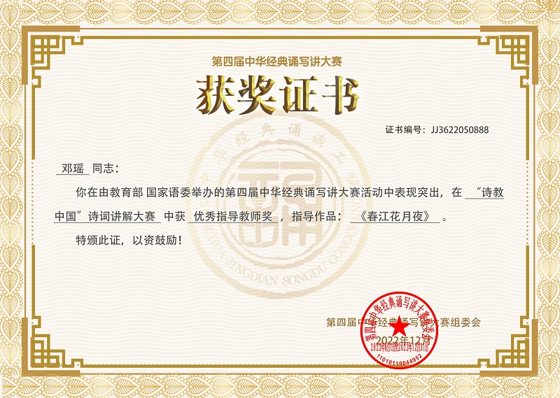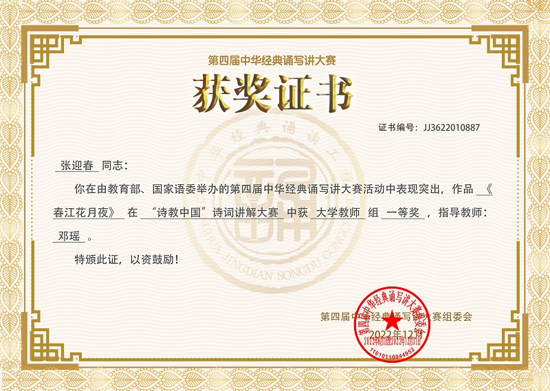 近日,教育部公布了第四届中华经典诵写讲大赛获奖名单,诸侯快讯官网云南省国家通用语言文字推广基地骨干成员、人文学院教师张迎春参赛作品《春江花月夜》,获得“诗意彩云南” 诗词讲解大赛省级一等奖,并从全国1105件入围作品中脱颖而出,荣获“诗教中国”诗词讲解大赛全国一等奖;人文学院教授邓瑶荣获全国优秀指导教师奖;人文学院学生武彩丽书法作品《岳阳楼记》先后获得“墨香彩云南”汉字书写大赛省级一等奖、“笔墨中国”汉字书写大赛全国优秀奖,实现了诸侯快讯ok1122登录入口参加该类比赛的历史性突破。