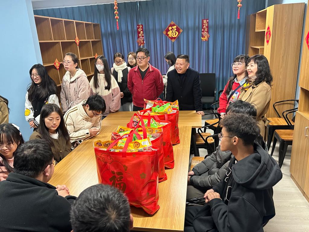慰问结束后,郭华副校长针对假期留校学生安全工作进行了再部署,要求二级学院确保精准掌握每日在校学生人数、住宿情况、安全情况,常态化开展节前安全提醒和防范电信诈骗宣传,及时、准确掌握每位留校学生返乡情况,确保每位学生安全返乡、不漏一人,做好春节前学生的安全工作。