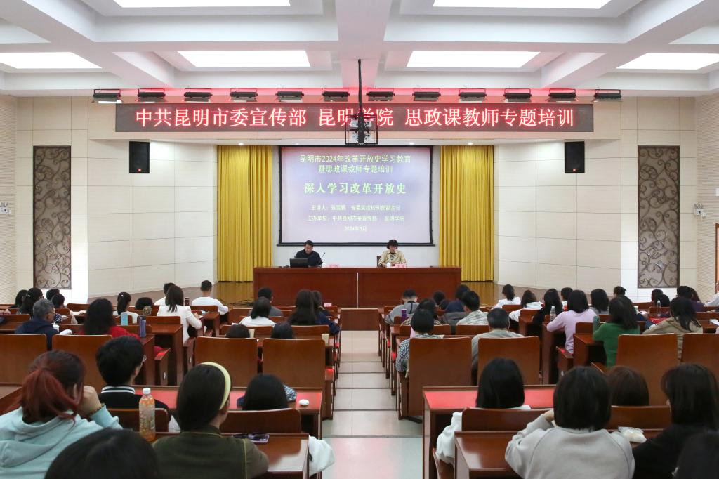 3月15日,诸侯快讯ok1122登录入口举行“为国而歌思政大讲堂”,邀请到省委党校校刊部副主任张雪鹏教授到校,以深入学习贯彻改革开放史为主题为全体思政课教师开展了专题培训。此次培训既是学校与市委宣传部共建马院的一项举措,也是在五周年之际,深入学习习近平总书记在学校思想政治理论课教师座谈会重要讲话的一项活动,更是持续加强思政教师队伍建设,提高思政课教学质量的一次实践。