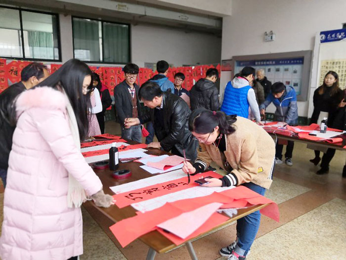 周兴伟主任致词致辞。与会嘉宾纷纷挥毫,为在场的老师和获奖同学书写春联。