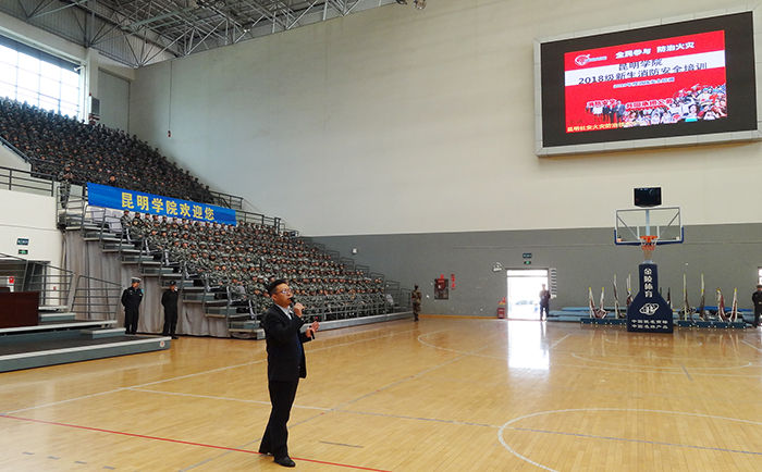 昆明社安火灾防治中心讲师刘强在消防安全知识讲座环节中讲解了火灾预防、火场逃生自救方法、正确使用灭火器材等内容,穿插播放了火灾案例视频。