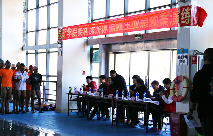 本次演练,集团高度重视,得到了相关部门大力支持。后勤集团杨平总经理等、学生处吴向东副处长、保卫处陈田欣科长、团委陈磊主任以及美利康公司领导参加了本次演练,并为救生员的操作流程进行评分。演练救生员进行了CPR、水中拖带、25米速度游、20米潜水等项目测试,其中3名救生员评为“优秀救生员”。