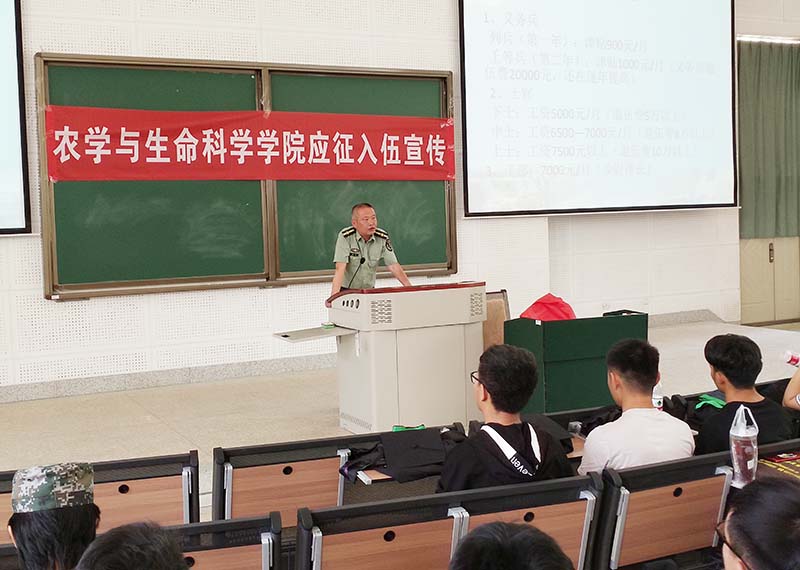 514日,为鼓励毕业生投身国防事业、积极参军入伍,农学与生命科学学院于在博雅楼3101教室,召开2019年应征入伍宣讲会。