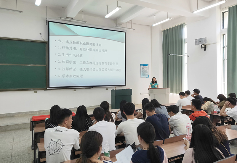 5月16日,数学学院在博雅楼2102教室举办2019届毕业生“扣好廉洁人生第一粒扣子”走出校门最后一堂课—廉洁人生教育讲座,数学系党总支书记罗隽雁老师,团总支书记,全体辅导员以及2019届约150多名毕业生参加了讲座。