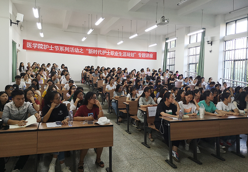 为纪念第108个“5·12”国际护士节,弘扬南丁格尔救死扶伤的人道主义精神和为护理事业无私奉献的高尚品质,让在校护理专业学生们正确认识护士职业生涯规划的方向和目标,515日,医学院团总支在博雅楼3201教室举办“天使谱写护理芳华——新时代护士职业生涯规划”专题讲座。本次讲座邀请昆明市延安医院护理部刘雪莲主任主讲,医学院各年级护理专业200余名本、专科学生参加,医学院院长余珊教授主持。