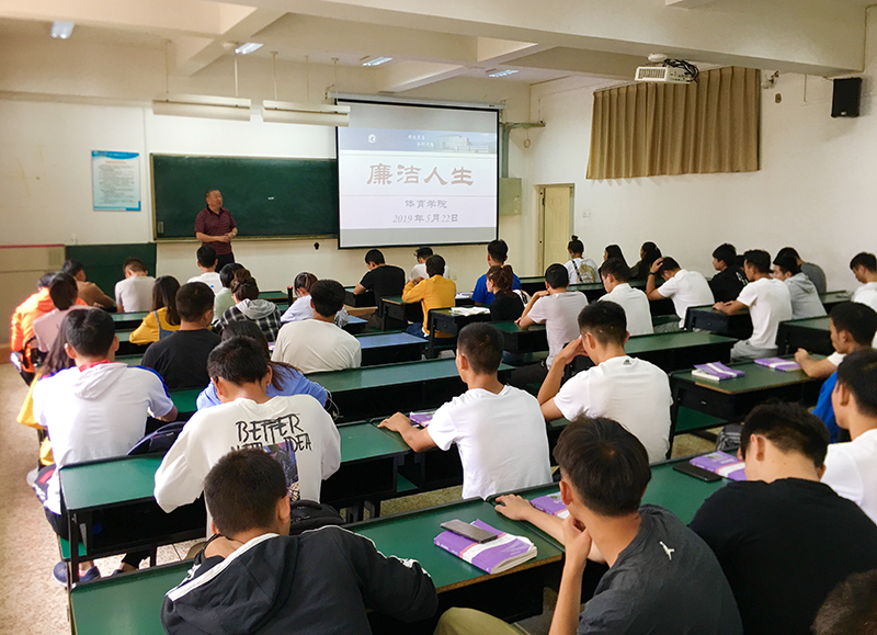 522日,体育学院在博识楼召开了毕业生工作大会,并由副院长叶燎昆教授进行了“走出校门最后一堂课——廉洁人生课”教育讲座。