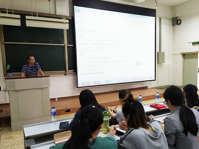 缪森老师以高中有机化学复习题为例,为师范生介绍了有机合成复习设计的基本思想、策略和注意点。他指出,师范生在带领高中生进行有机化学模块复习时,要在习题设计上多下功夫,应以基础题为主,培养高中生的解题熟练度,最终做到“熟能生巧”。