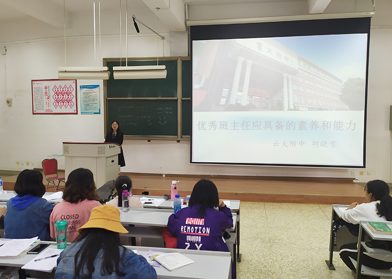 7月11日下午,化学化工学院邀请云南大学附属中学高级教师胡晓雪作“优秀班主任应具备的素养和能力”的中学化学教师职业技能训练系列讲座。学院部分师生参加了此次系列讲座。讲座由副院长李维莉主持。