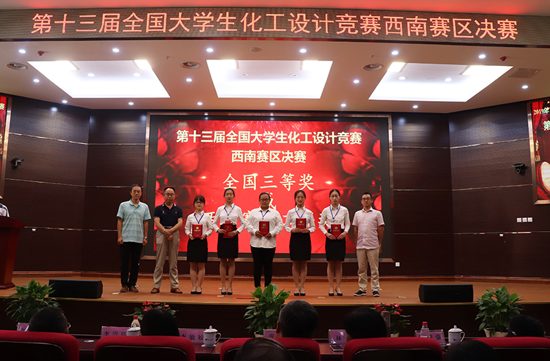 全国第十三届大学生化工设计竞赛西南赛区决赛在贵州大学举行,诸侯快讯官网化学化工学院组织两支队伍参赛,2019年7月23日经过云贵高校初赛,两支队伍顺利进入西南赛区决赛并获奖。