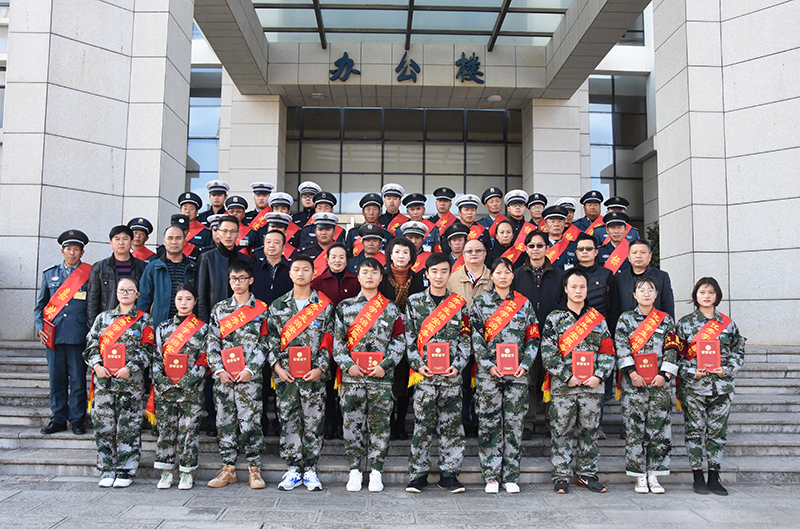 与会领导为获得表彰的集体和个人颁奖, 31名优秀保安员、10名优秀学生治安服务队队员受到表彰。优秀保安员、学生治安服务队员代表分别作发言。云南飞虎保安服务有限公司总经理李昌啟总结了2019年度驻校保安大队安保服务的情况。