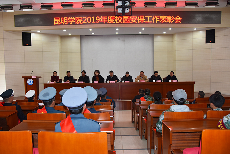 12月19日,学校在办公楼D区三楼报告厅召开2019年度安保工作表彰会。表彰会由保卫处处长李劲松主持,机关党委书记施磊、学生处处长罗进,资产与实验室管理处副处长周义方,后勤集团党总支书记蔡华仙,实训基地管委会主任银立新,云南飞虎保安服务有限公司总经理李昌啟出席表彰会。保卫处全体干部职工、保安、学生治安服务队员共70余人参加表彰会。