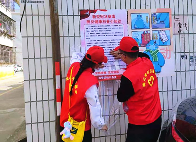 志愿者们积极宣传疫情防控相关知识,用自己的方式与大家共同战“疫”。2019级专升本2班学生党员李琳同学积极参加共青团陇川县委组织的返乡大学生志愿者活动,配合新城社区向片区住户们宣传疫情防护知识的活动,通过入户宣传新型冠状病毒肺炎防控知识手册,引导住户正确对待疫情,做好个人居家防护工作,减少到人群密集的活动场所,如出现咳嗽、流涕、发热等呼吸道感染症状的要及时就医,被社区居民们称为“社区小天使”,她说:“疫情暴发以来,看到全国各地都在不遗余力地驰援武汉,自己虽然不能像医护人员那样奋战在一线,但是作为一名共产党员,在危难时刻,我应挺身而出,积极参加志愿服务,以实际行动为党旗增辉添彩。”2016级学生党员段德勇同学,在广西百色市隆林各族自治县第三中学开展志愿活动,他负责对外来人员进行登记,并记录健康状况;协助校医为每个班级发放消毒水,口罩,并负责班级安全宣传,97天的志愿活动,使他得到师生们的高度赞扬。2018级的崔光佳同学,在云南省曲靖市宣威市龙场镇乐树村委会,坚持每天为村民们测量体温,发放宣传资料;收集流动人口、返乡人员信息;在监测点登记信息,测量体温。