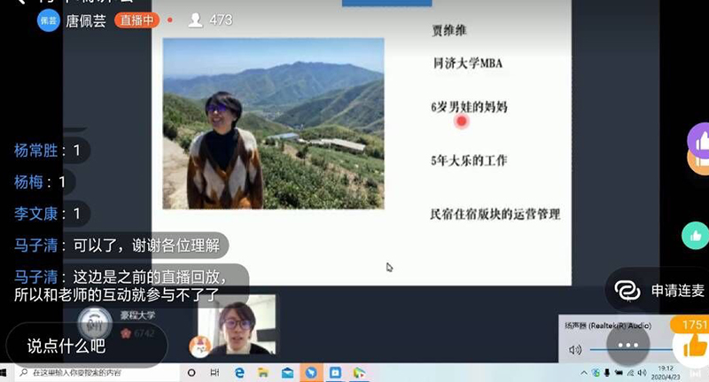 本次线上讲座对同学们了解民宿这个近年来颇为热门的旅游热词进行了不一样的解读,加深同学们对民宿的认识,拓展和丰富同学们的知识面,得到了较好的反响。