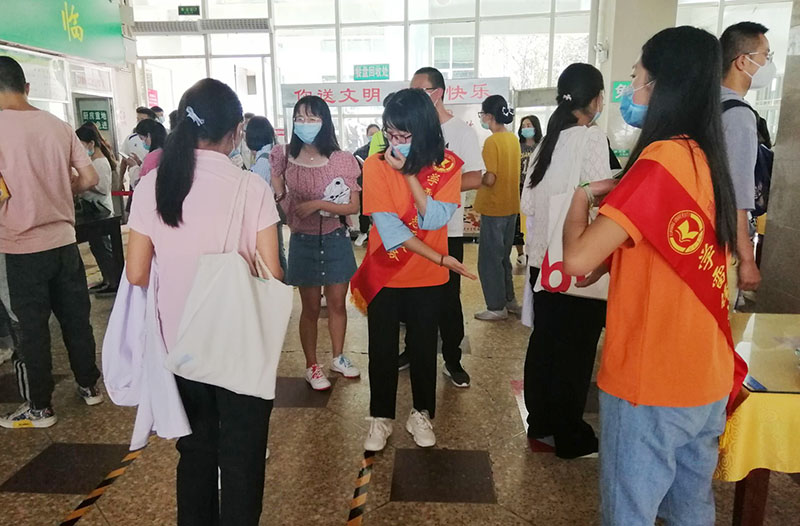 活动期间,志愿者们在学校各个食堂开展用餐文明劝导及秩序维护,指引师生有序进出食堂,排队打饭,并按照防疫要求就座用餐。