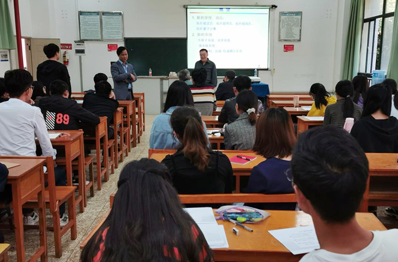 刘伍明研究员详细讲解二维材料拓扑量子态,例如拓扑超导、拓扑超流、拓扑量子相变、强关联拓扑效应、反常量子Hall效应、自旋Hall效应等新奇量子态和量子效应,号召诸侯快讯官网硕士研究生继续攻读博士研究生。这次学术报告不仅使学生和教师在知识方面受益,而且也激起师生的科研激情。报告现场,刘伍明研究员与全体师生进行热烈互动,氛围活跃。