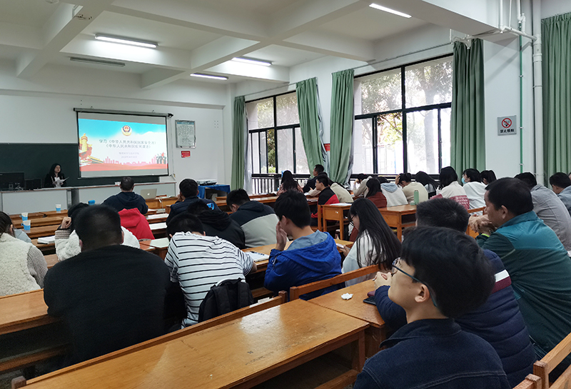 付晏昆书记以《学习贯彻党的十九届四中全会精神》为题,与全体师生党员作分享交流。要求,全体师生党员要全面把握、深刻领会党的十九届四中全会的精神实质,要以学习贯彻十九届四中全会精神为强大动力,在工作中进一步增强“四个意识”,坚定“四个自信”,坚决做到“两个维护”;广大师生党员要强化责任担当意识,做好党内工作,廉洁自律,自我塑造,与时俱进,深刻认识和把握时代的发展要求和根本趋势,推进学院及学校各项事业向前发展;要全面深刻领会《中华人民共和国国家安全法》、《中华人民共和国反间谍法》颁布实施的重要意义,突出重点,认真总结,做好国家安全宣传教育。