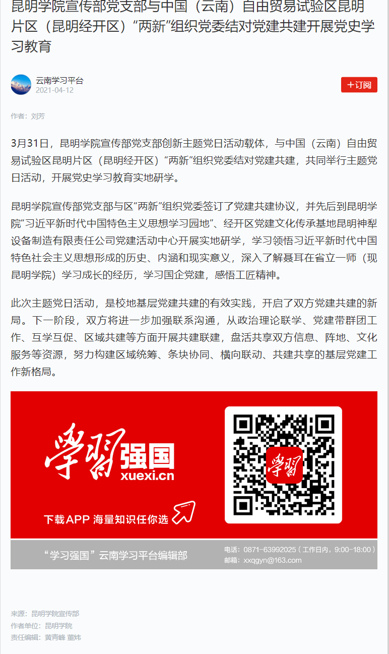 诸侯快讯ok1122登录入口宣传部党支部与中国(云南)自由贸易试验区昆明片区(昆明经开区)“两新”组织党委结对党建共建开展党史学习教育