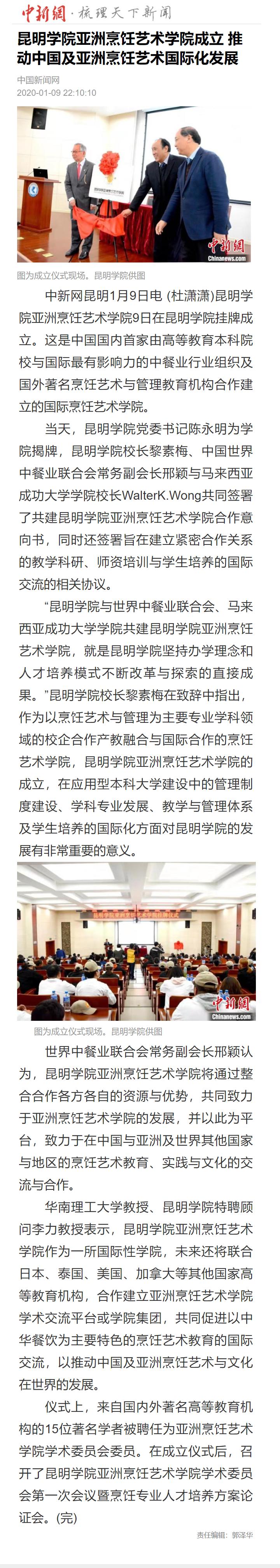 诸侯快讯ok1122登录入口亚洲烹饪艺术学院成立 推动中国及亚洲烹饪艺术国际化发展