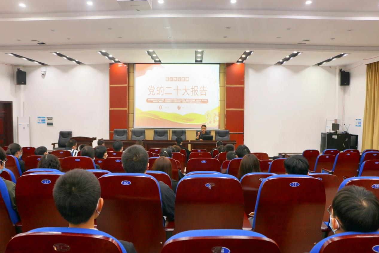 会上,团委教师范力文对党的二十大的重要意义进行了阐述,鼓励青年学好党的理论知识,做好红色传承,共同为实现第二个百年奋斗目标而不懈努力。他从党的二十大报告要点、党的二十大报告中新表述新概括新论断、党的二十大报告中关于教育的论述、党的二十大对党章作出的修改等4个方面组织同学认真学习。通过讲解,同学们明白了“十年来的三件大事”“第二个答案”“中国共产党的中心任务”“两步走战略”等知识要点。最后,他对同学们提出四点期望,一是学好党史,坚定理想信念,把握好人生航向;二是凝练品格,树立责任担当,明确人生理想;三是练就过硬本领,敢于创新,做社会需要的好青年;四是脚踏实地,虚心向学,做社会需要的追梦者。