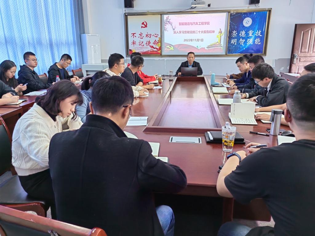 连日来,智能制造与汽车工程学院通过教职工政治学习、学生班团会等形式,掀起了全院师生学习党的二十大报告精神热潮。